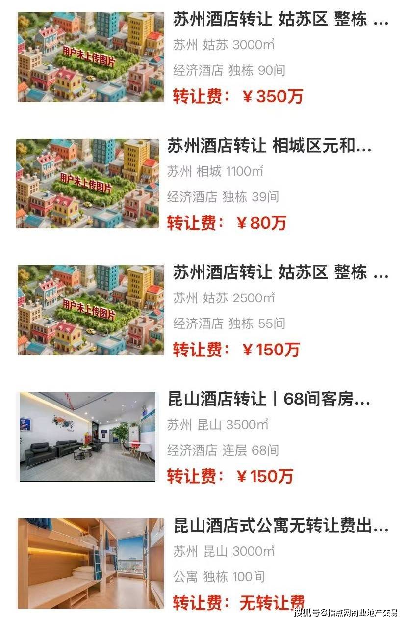 · 成本优势明显:如同为独栋,吴中区105间房转让费仅150万,相城区39间房为80万,远低于姑苏区同类项目。昆山部分项目(如政府房产、公寓)也呈现较低租金或免转让费特点。